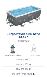 בריכה אולטרה - Bestway 56457 4.12x2.01x1.22 (2026)